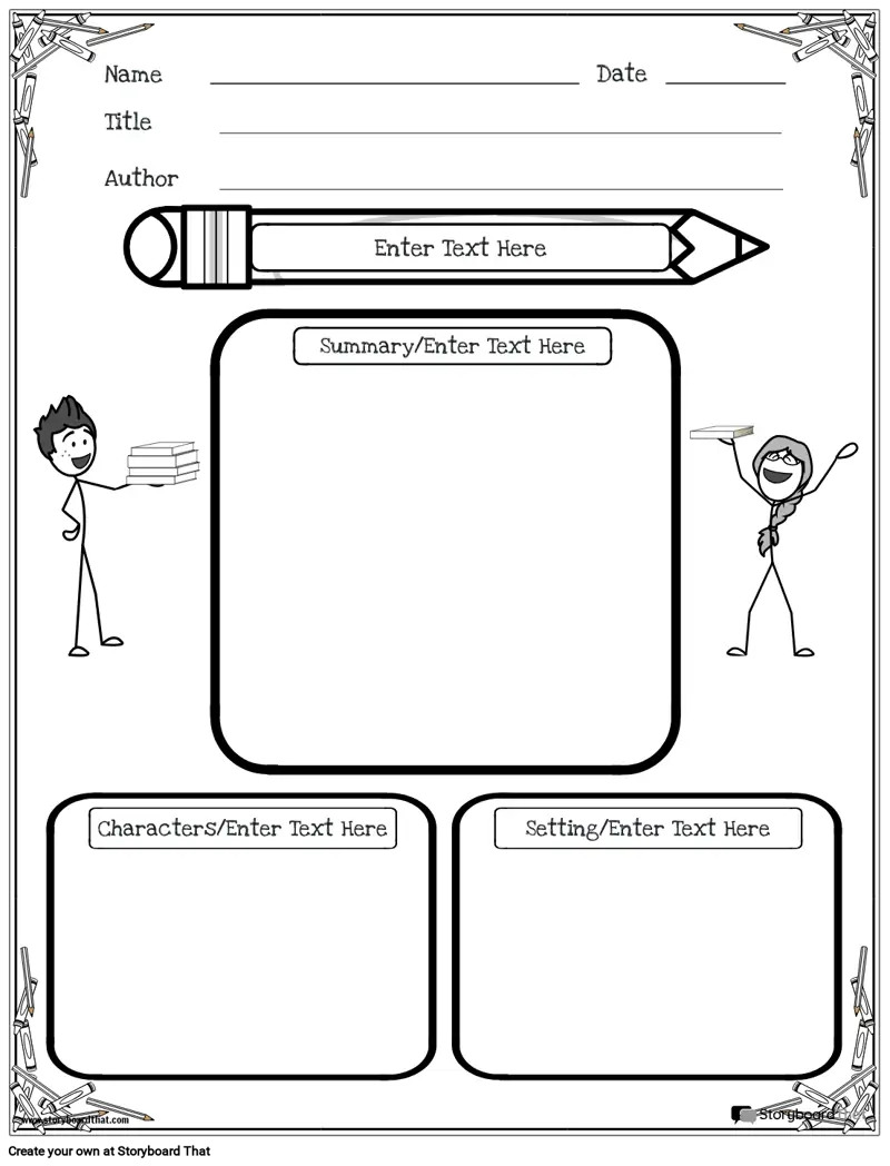 Las hojas de trabajo del planificador de informes de libros son herramientas eficaces para que los estudiantes organicen y planifiquen sus pensamientos e ideas antes de comenzar un informe de libros más grande y detallado. Planificar con anticipación con una plantilla de Storyboard That es un paso esencial hacia un proyecto de informe de libro increíble y único.