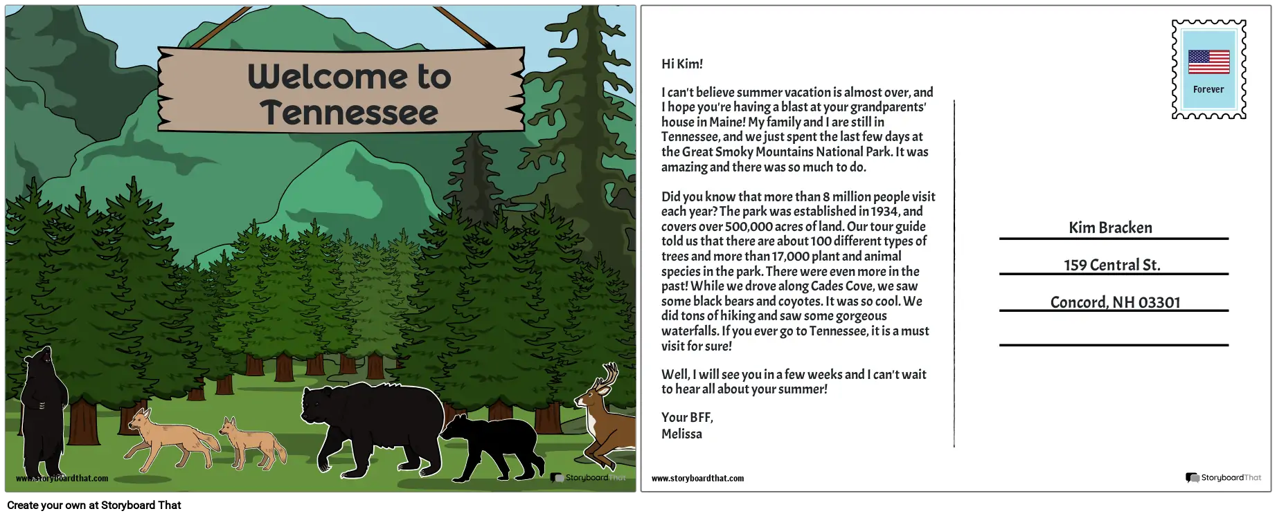 בנבאדה יש כל כך הרבה מקומות נפלאים לבקר בהם, וגלויות הן דרך מהנה ליידע אחרים על היכן היית! באמצעות תבנית הפוסטר של 2 תאים שסופקה, התלמידים ייצרו גלויה מטנסי . החלק הכתוב חייב לכלול לפחות עובדה אחת על ציון הדרך, והתמונה חייבת לתאר במדויק את המיקום. כמה דוגמאות לאטרקציות תיירותיות בטנסי הן גרייסלנד, היכל התהילה של מוזיקת קאנטרי, ה-Grand Ole Opry, הפארק הלאומי Great Smoky Mountains ודוליווד.