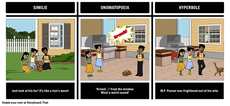 Odlična aktivnost je da učenici naprave storyboard s 3 ćoška. Svako ćošak treba istaknuti različit primjer figurativnog jezika iz priče, objasniti njegovu vrstu i značenje te uključiti ilustraciju. To čini apstraktni jezik konkretnijim i zabavnijim.