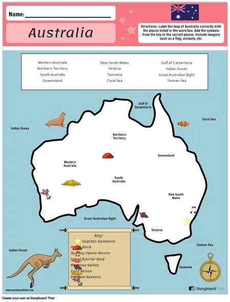 Iako se ponuđeni predložak odnosi na Australiju, učitelji mogu pogledati naše predloške radnih listova za karte za više ideja o drugim lokacijama ili dodati vlastitu kartu po izboru!