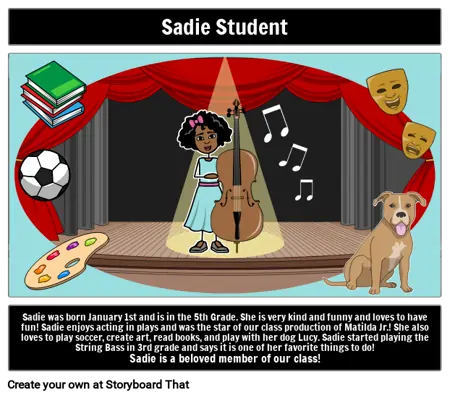 - Pogledajte odjeljak Biografija u Storyboard That Picture Encyclopedia za inspiraciju.