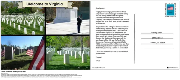 Connect your students with a class in another region for a postcard exchange. This builds excitement and real-world writing skills while giving students an authentic audience for their Virginia postcards.