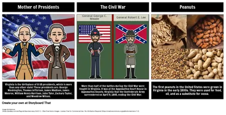 Cilj: Napravite ploču scenarija od 3 ćelije koja opisuje i ilustrira 3 zanimljive činjenice o Virginiji.