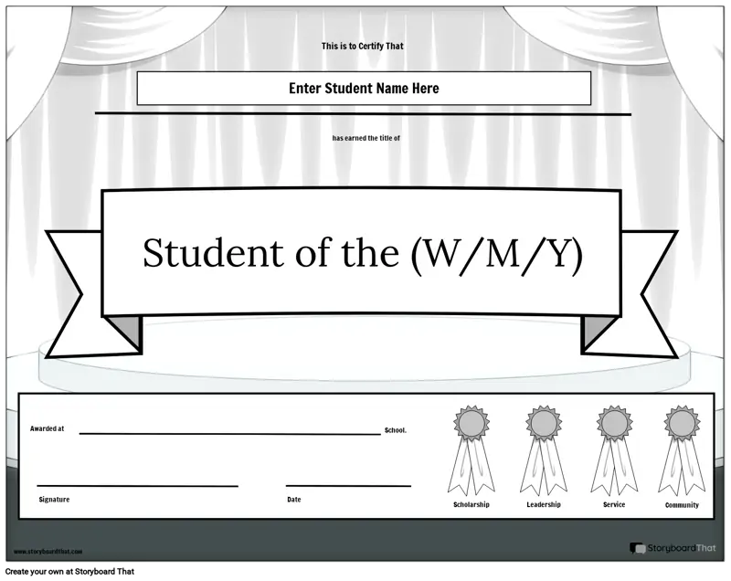 Nagrada učenika tjedna, mjeseca ili godine. Crno-bijelo u pejzažnom rasporedu.