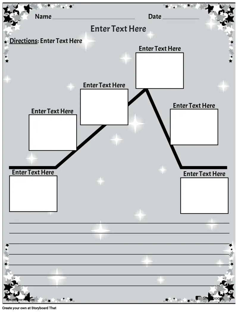 Radni list dijagrama zapleta s crno-bijelim zvijezdama. Jednostavan za prilagodbu i ispis!