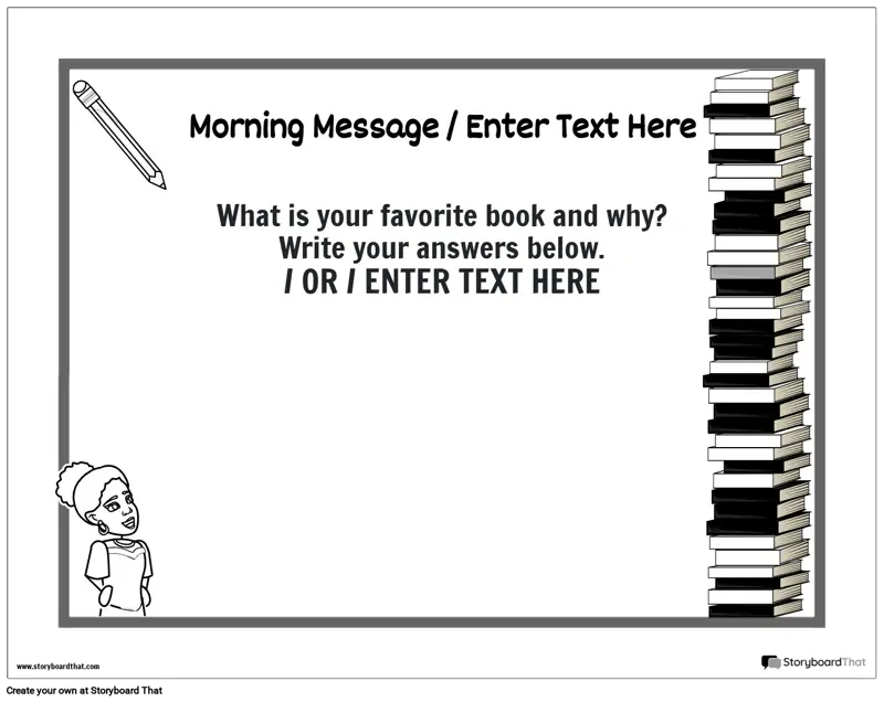 Iskoristite naše prazne jutarnje prijave za bilo koji dan u tjednu! Koja je vaša omiljena knjiga i zašto? Crno-bijelo za lakši ispis.