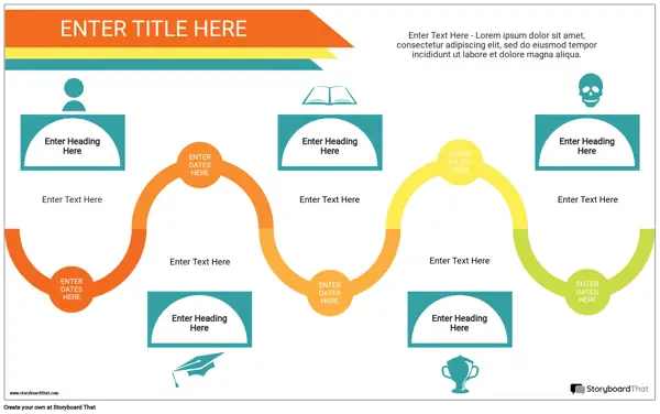 Napravite šarenu i informativnu povijesnu infografiku! Učenici ili učitelji mogli bi opisati događaje od povijesne važnosti ili život značajne osobe u ovom predlošku infografike vremenske trake. Ovaj se poster može ispisati i istaknuti u učionici ili prikazati digitalno. Format valovite linije.