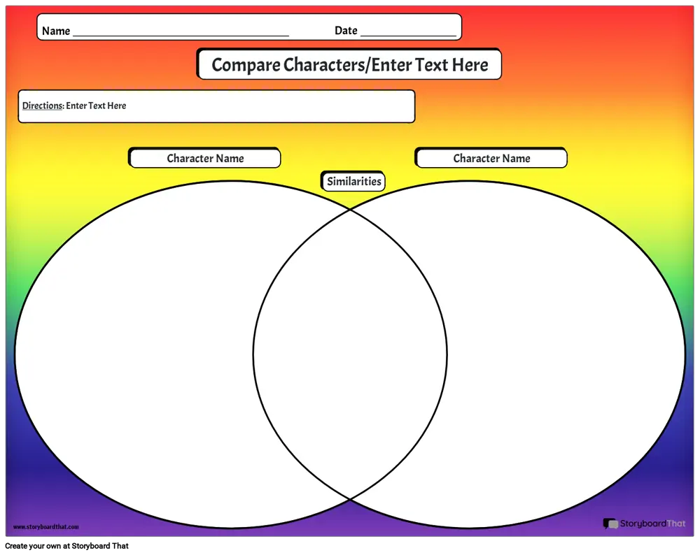 Radni listovi za usporedbu likova strukturirani su na način da učenici mogu vizualno pokazati razlike i sličnosti dvaju ili više likova. Ovi radni listovi uključuju grafički organizator, kao što je Vennov dijagram, mreža ili grafikon, i pomažu učenicima da organiziraju svoje misli na jednostavan način.