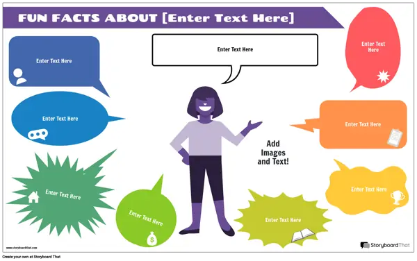 Napravite šarenu i informativnu infografiku sa zabavnim činjenicama o temi ili osobi od interesa! Učenici ili nastavnici mogu prilagoditi ovaj hiroviti predložak infografskih mjehurića govora dodajući tekst i slike. Ovaj se poster može ispisati i istaknuti u učionici ili prikazati digitalno.