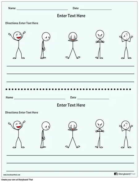 Øk emosjonelle uttrykk gjennom et spill med charades. Forbered følelseskort med forskjellige følelser skrevet på. Be elevene tegne et kort og formidle følelsene ved hjelp av ansiktsuttrykk, kroppsspråk og bevegelser. Deres jevnaldrende gjetter deretter følelsen som blir skildret. Etter hver runde, legg til rette for diskusjoner om den valgte følelsens triggere og passende svar. SEL-regneark kan forbedre samtaler ved å utforske nyansene og kontekstene til hver følelse.