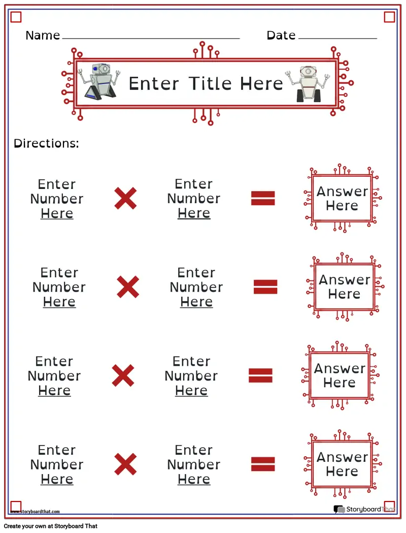 Tak, w Storyboard That dostępnych jest wiele zasobów, które pomagają tworzyć arkusze mnożenia, takie jak generatory arkuszy i szablony.