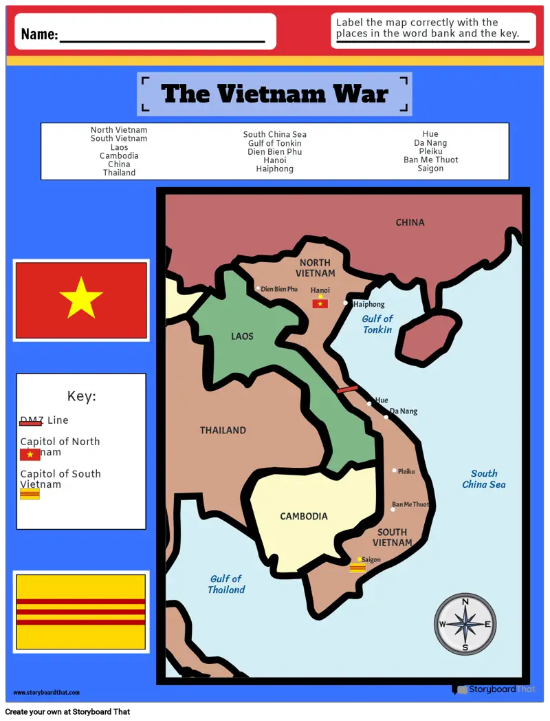 Map labeling activities help students visualize key locations and events of the Vietnam War, making history more engaging and memorable. Teachers can guide students to label important cities, battle sites, and note significant events, reinforcing both geography and historical context.